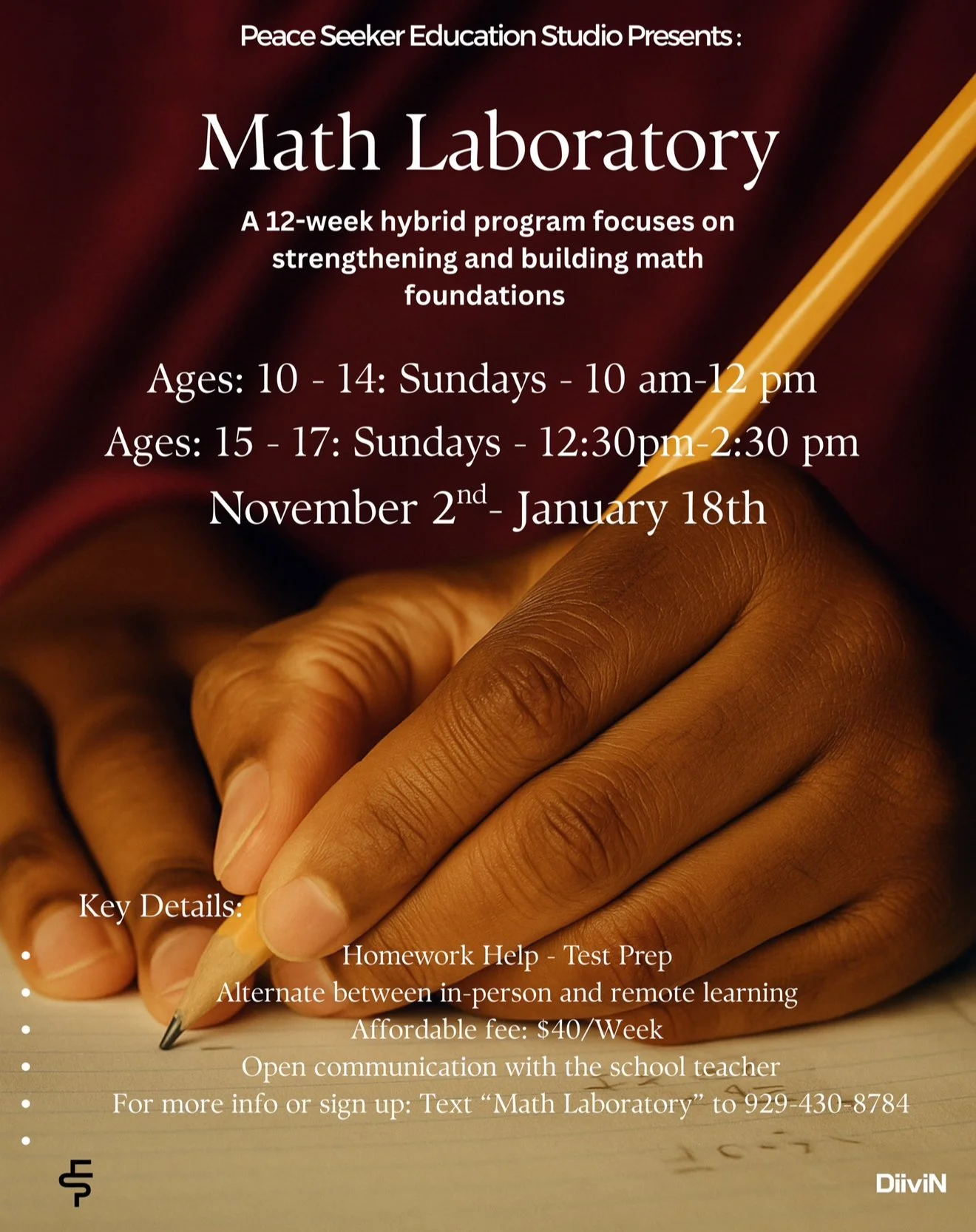 For more info or sign up: Text “Math Laboratory” to 929-430-8784