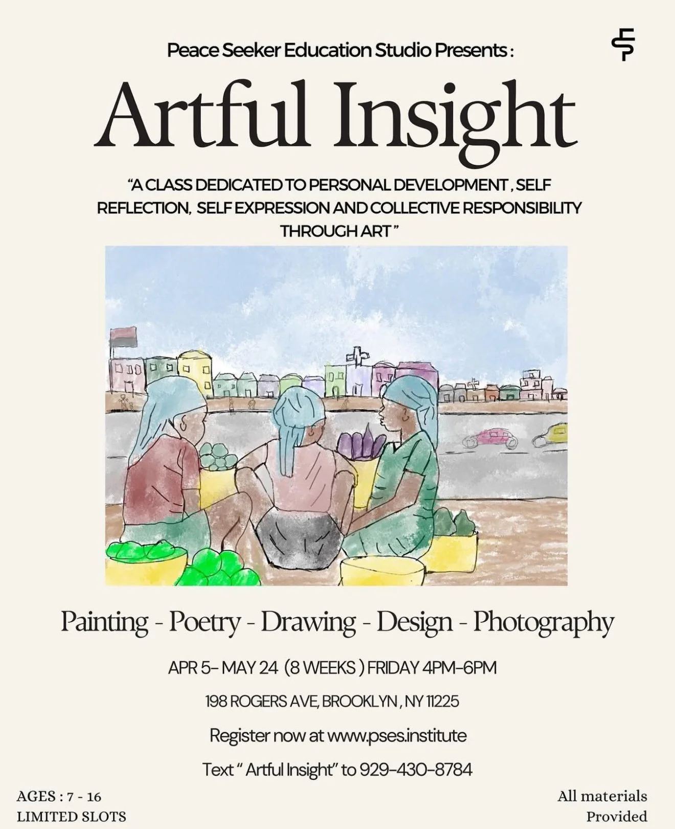 We are in a period of time and space where our approach to art and its utilization is simply through the lenses of capitalism. Therefore, the responsibility of an artist is distorted. And as consumers of art, our ability to dictate what we want is missing. As a result of this realization, We launch an eight-week program crafted for black children to reflect on the power of storytelling through mediums such as abstract art, design, photography, and more. “ Artful Insight “ is a class dedicated to personal development, self-reflection, self-expression, and collective responsibility through art.